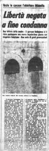 Dopo la marcia antimilitarista ero diventato vegetariano, questo permise a mia madre di ottenere dalla direzione del carcere di farmi avere un po’ di viveri integrativi (yogurt e frutta) tramite un negozietto di Peschiera. Tramite questo canale riuscì così a far entrare anche qualche ritaglio di giornale o altro materiale, dato che la censura carceraria leggeva le lettere in arrivo e in partenza, cestinando tutto ciò che sapeva di politica.